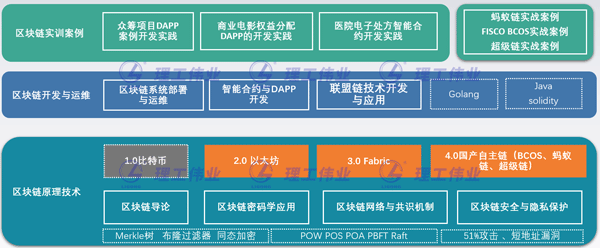 產(chǎn)品提供的教學(xué)資源包含我們自主研發(fā)的10門區(qū)塊鏈實(shí)驗(yàn)及教學(xué)資源,共計(jì)130+實(shí)驗(yàn)。其中,區(qū)塊鏈原理技術(shù)類課程4門,該類課程主要介紹區(qū)塊鏈系統(tǒng)底層的技術(shù)原理,涉及密碼算法、共識(shí)機(jī)制、安全機(jī)制等,知識(shí)點(diǎn)包括常見的哈希、加密算法、梅克爾樹、布隆過濾器、多方計(jì)算、共識(shí)機(jī)制、安全隱私等。區(qū)塊鏈開發(fā)與運(yùn)維類課程3門,以全球最成熟以太坊和Hyperledger Fabric開源項(xiàng)目,以及螞蟻鏈、Fisco BCOS等國內(nèi)主流項(xiàng)目為基礎(chǔ),介紹其部署、測試、運(yùn)維、智能合約/鏈碼開發(fā)、DAPP開發(fā)等實(shí)踐技術(shù)。區(qū)塊鏈案例實(shí)訓(xùn)類課程3門,從實(shí)際應(yīng)用案例的角度解析區(qū)塊鏈技術(shù)。