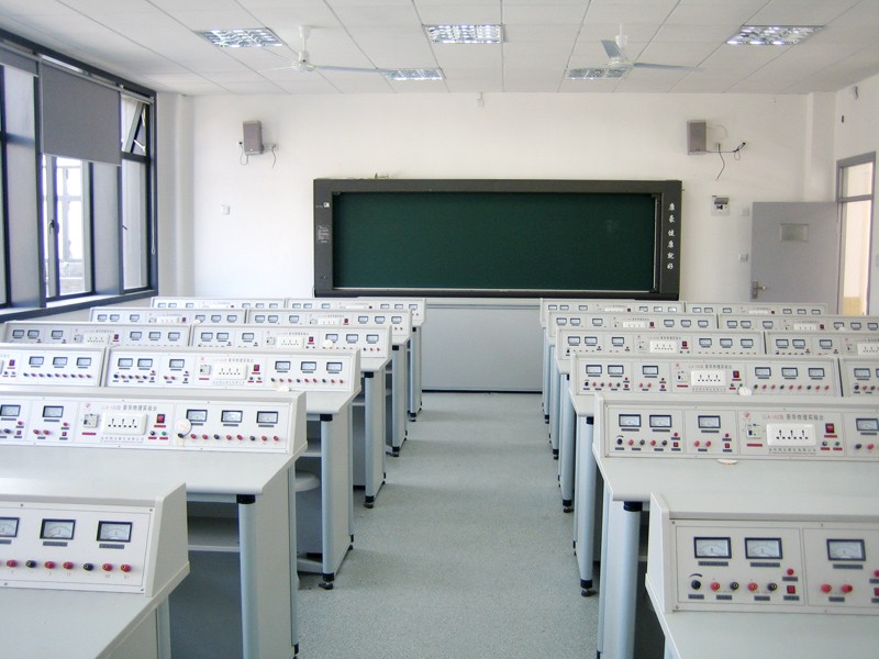 每組配備電源開關(guān);分別對四組進行安全保護及教師用電源。教師和學(xué)生電源控制部分配漏電保護器,使教師與學(xué)進行安全保護及教師用電源。學(xué)生低壓電源由教師臺控制并輸送到學(xué)生桌。